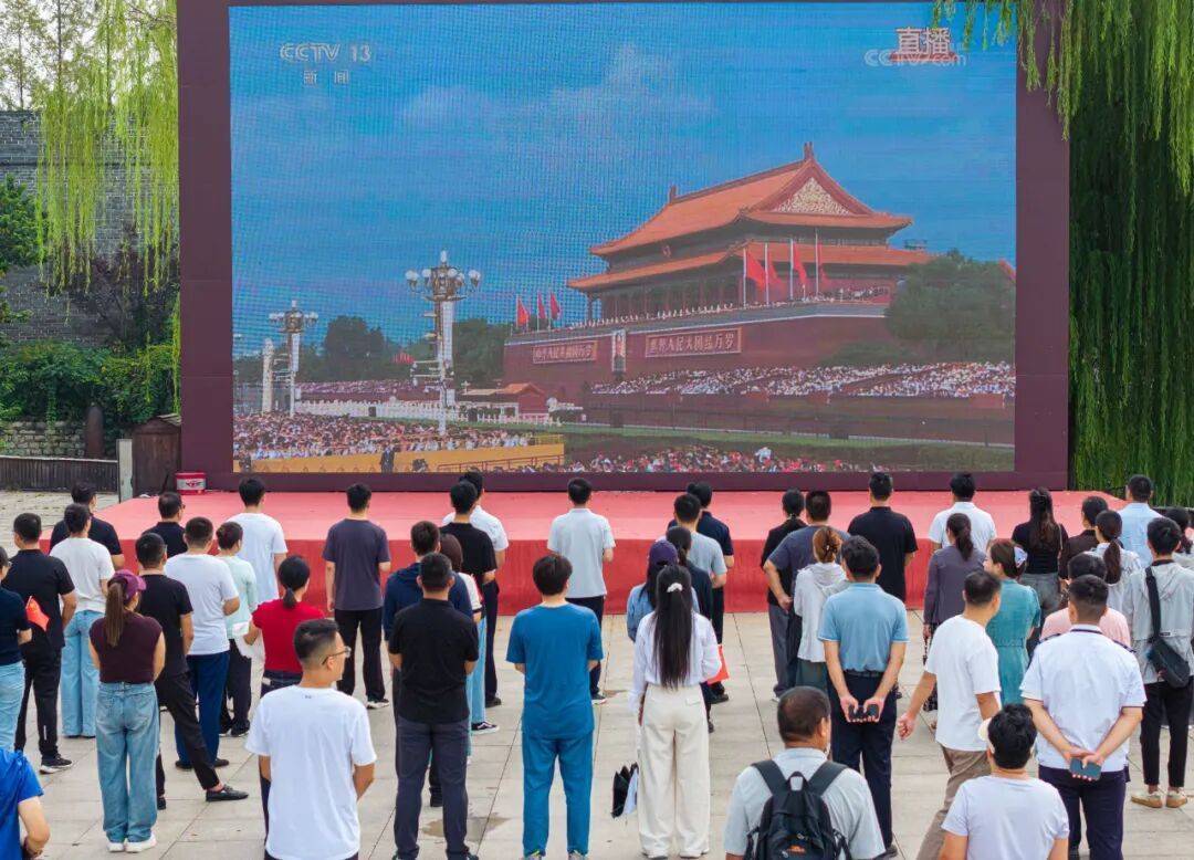 同时,古城西门设立了“9.3”阅兵直播观看点,众多游客和市民聚集在此,共同观看阅兵直播,感受着阅兵仪式带来的震撼与荣耀,见证着国家的繁荣富强。